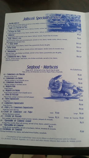 Very good food, generous portions, reasonable prices and friendly staff. My family and I eat here at least once a week. I highly recommend jaliscos.