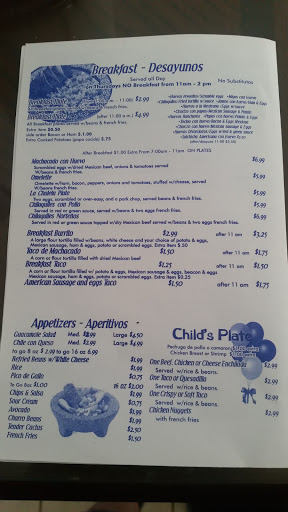 Good inexpensive place for dinner or lunch. Wide variety of TexMex food. Quick service and very friendly staff. Quick take out as well, and good dine in environment. Awesome breakfast selection, and daily specials on plates.