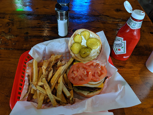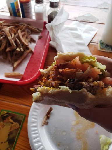 One day I decided to pick a direction and just drive and pick a random place for lunch. Thats how I ended up here. It would be an easy place to miss, but they seemed to be doing brisk business. I picked a random item off the menu, the Buffalo burgers and fries. While ordering I noticed one of the people working the grill was dressed in a US Postal Service uniform, and she was not using gloves. A little weird, but I ordered anyway. The burger came quickly. Im not sure what made it a "buffalo" burger, as it seemed like a cheeseburger with just a bunch of pickles and onions. The burger was adequate, but nothing special. I would imagine it is reliable, and theyre generous with toppings, so it could be worse. The fries were mediocre, but not atypical for a burger joint. Oh, that postal worker working the grill? As I was there she walked out of the kitchen with her food, and climbed into a mail truck, then took off. Im still not sure what happened there. Was she a customer, or...? Atmosphere appears to be going for icehouse, with random signs thrown in for good measure. Except they do not seem to serve alcohol, so thats a weird choice. Seating was ample, albeit dirty. Burger: 6/10 Speed: 9/10 Price: 6/10 Atmosphere: 7/10 Perceived Hygienic Food Handling: 1/10