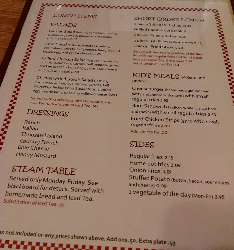Been going to eat there for breakfast and lunch for years. Excellent food and service. Very clean and cooking is homestlye. Very curtious servers in a friendly atmosphere. Very good value for great food and generous portions.