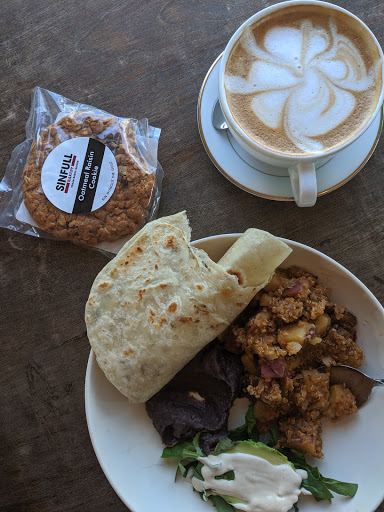 Finally checked out Doshis cafe after hearing many good things about this place. Some of my fellow yelpers kept on going on & on about this place. I came here for lunch with a friend of mine and it was delightful. I got the artisan grill sandwich with a cappuccino with almond milk both really good. Friend of mine ordered the mumbai street sandwich with a thai tea. She was delighted with her choices as well. The facility to me looks like somebody cleaned out a thrift store and put all the furniture at this place. Not like theres anything wrong it that. Just random items here & thereThe atmosphere is nice, quite and homie. Definitely a good place to study, or read, whatever sinks your ship. We were probably the only people for a for a little while. I need to come back to this place for dinner. Try out the dinner menu. Looks legit. Lots of different variety. Im sure to like anything I order from this place. Ill be back.