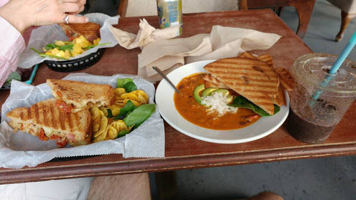 The Doshi House is one of my favorite places in 3rd ward to grab coffee and some veggie lunch options. Deepak is the coolest guy and is always so pleasant when I visit. There are people who are "skeptical" of this place due to its location but there are missing out! There is a tiny parking lot and ample street parking. As with anyplace, lock your car and/take your valuables. I cant believe I am saying this as nothing has ever happened to me and I dont foresee it happening. The Paninis are amazing I suggest any of the three. The "Moon" spritzer is my favorite drink and the smoothies are AMAZING. They serve dinner and brunch now with all items being vegetarian friendly. Stop in and show Deepak some love!