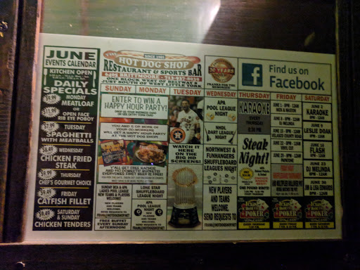 Friendly service, large variety cooked to order menu. This place has a bar atmosphere to it. Large dining area, pool tables and games. Food was good. I got the cheese fries and chili cheese dog. Food was cooked to order and was hot and fresh. The hot dogs are not the greatest compared to James Coney and I could definitely make a greater Texas chili dog at home. Dont get me wrong they are good but not the best. The hot dog shop also offers many comfort food style items such as chicken fried steak, BBQ, burgers, nachos, breakfast, steak & eggs and ice cream, cookies and pie. This restaurant also has daily lunch and dinner combo specials. I rank this place a 4 because the flavor was nothing special but there are many things about this restaurant that make it worth the visit. Great business hours, large dining area, friendly service and large menu that comes out hot and fresh.