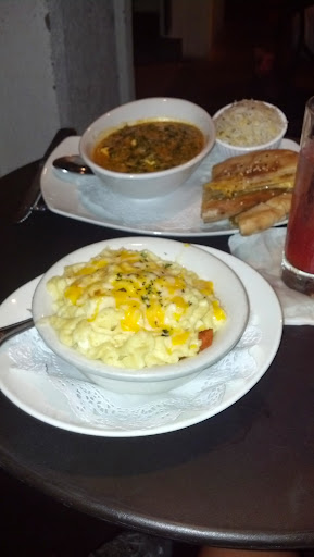 My partner and I went to Queen Vic for Saturday lunch as we were craving Indian food. We parked ourselves as there were many spaces available and the valet guy was on his break. The food is definitely interesting...its not authentic Indian, as we thought, but western interpretations of classic Indian dishes. My fish curry was fragrant and mild, it had julienned vegetables and fresh peas in a thick coconut based sauce, which reminded me of French cuisine. My partners chickpea curry was also very mild - tasting more like British breakfast beans than channa masala. Regardless of the authenticity, I found the food to be fresh and delicious. The waiter was friendly and helpful and the space itself was beautiful without being fussy. Ill definitely go back and try their burgers or fish and chips, but Ill look elsewhere to satisfy my Indian food cravings.