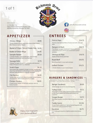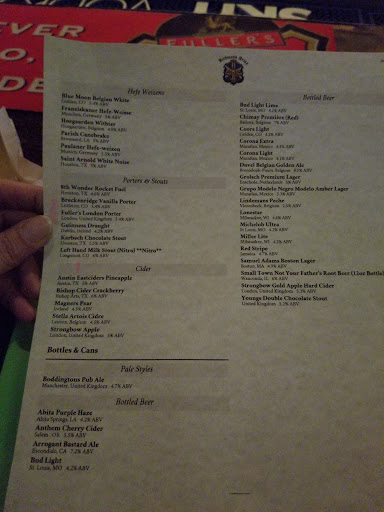 Just a few blocks from the most pretentious and expensive eateries Houston has to offer, Richmond Arms is a welcome oasis of good ales, solid food, and a fun and friendly crowd of anglophiles. Ignore the abundance of neon; there has to be SOME Americana, right? With two tap stations at the bar and a wall of taps behind it, there are no glaring omissions to their beer selection, which includes Bellhaven, Harp, Guinness, Newcastle, Newcastle Werewolf, Strongbow, Smithwicks, Fullers ESB, London Pride, and a host of others. The hot wings are decent but not spectacular, and the Scotch egg is satisfying (but strangely quartered). Dont order the egg without the Branston pickle or youll miss out :-) There are several TV screens to watch your favorite football or rugby matches as well. Notice how I called them by their .eu names -- Im one of those asses that thinks it makes him cool haha I would write more but Im headed to the Richmond Arms now for a game of darts. Cheers!