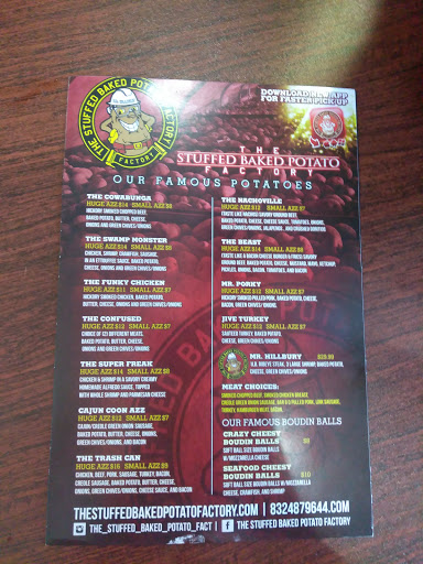I could go on and on in a lot of words to say how good the food is at this particular place but it will never do it justice until you go there and see for yourself. This quaint place has the best baked potatoes that I have ever eaten in my life; I am an addict for the Super Freak but they have so much more to offer including their own juices that are $3 a piece that will knock your socks off do yourself a favor and go see you will not be disappointed!! #1 in the City of Houston!