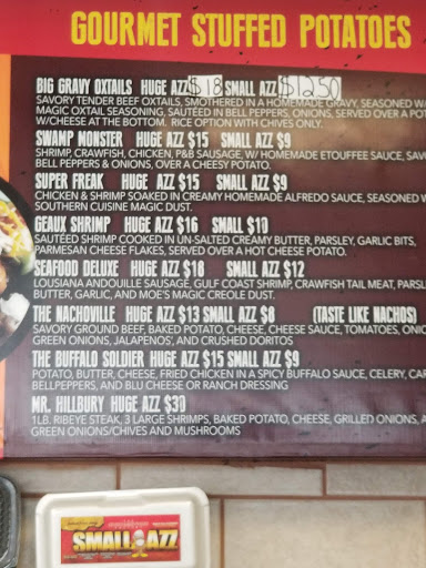 Maybe I should do 2 separate reviews.. 1 for the potato and the other for the Boudin balls. Overall the food wasnt terrible. My only complaint was receiving everything cold. I had to heat it before eating it. I stay about 6 minutes away so the travel time wasnt the cause. Ill start with the Boudin Balls since they were the best part. They are large enough to be a meal by themselves. The flavor was spot on especially once you add the sauce that comes on the side. The potato on the other hand wasnt all that great. I believe they reel you in with the images then leave you begging for flavor (not speaking for all the potatoes just the Swamp Monster). There isnt much potato there just loads and loads of cheese! They didnt skimp on the shrimp, chicken, or sausage though; I had meat in every bite. (So basically its all topping with not potato) All in all, if I do visit again itll definitely be for the Cheesy Shrimp Boudin Balls. You cant go wrong with that option.