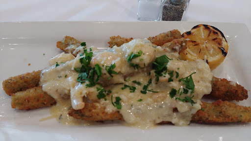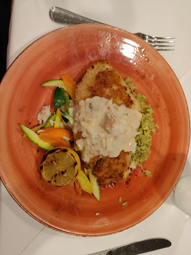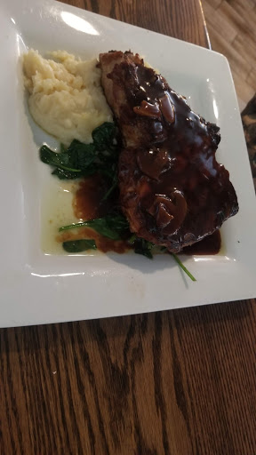 It took my wife almost 20 minutes to get her wine. It took me almost 30 minutes and several consults to get a beer as two separate servers including the "beer and wine guy" tried to help. The B & W guy couldnt even tell me what beer they had on his first trip even though he was sent over to inform/advise on beer. It wasnt until his third trip that he was able to tell me about all the beer they had on tap, still obviously under-informed on what the various beers were. And the actual beer selection wasnt even as good as the menu listed. Crab cakes were described as all lump no breadcrumbs which sounding interesting although not my style. In actuality, we had to search for crab meat, couldnt taste the crab meat or much else. If cheap frozen crab cakes from a box at Kroger tasted like this, I would be disappointed. My wife was thinking the exact same thing. No questions were asked even though my wife sent hers back with only a single bite taken out of it. The duo of sauces (marinara and something herbal?) were an interesting choice. My wifes entree was the veal chop which was tasty. Probably rates 3/5 for the plate. Although the bone was described as succulent with marrow and was actually rather bone dry. She said the sauce was tasty. The cookedness of the mushrooms in the risotto varied from raw to done. My hangar steak with jalapeño grits was a flabby, three sectioned slab with lots of fat (roughly 1/3 inedible and I was searching for meat) with absolutely no jalapeño in the grits. Jalapeño wasnt even held next to these grits. I expect the cook looked back after the grits were done and saw that he/she left out the jalapeño, if they were even a thought. Unfortunately, I chose the on-menu hangar steak over the nightly special hangar steak because of the jalapeño grits. This was pointed out to our waiter. He had a few excuses at first. Maybe an apology eventually after I explained to him that it wasnt a small amount of jalapeño, it was absolutely no jalapeño. As for the steak, I would have left this one at the store. The cheesecake for desert was tasty. Best part of the meal for me. We would return potentially for the cheesecake, but would not have another meal here. We are rating this restaurant 2/5 because it was clean and even though service sucked, the server seemed like he was trying.
