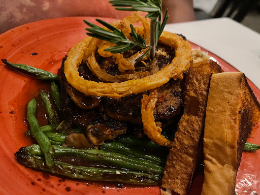 Contemporary neighborhood spot. Its on the end of a recently built strip center, jutting into a quiet little neighborhood--nice location. Food was above average (sampled a few different appetizers and entrees). They were very busy for our visit, and some of our items were either a little cold or a bit overcooked; but, nothing worth raising much of a fuss over. Good ingredients for a diverse and modern menu reasonably well-executed. Excellent service: our waiter was knowledgeable and affable. Manager made the rounds to make sure all was well. We sat outdoors and enjoyed the live music and sunset. Great time! Ill be back.