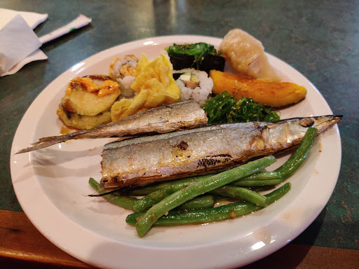 Really loved this place, might be the best buffet Ive ever been to as the food is not just dumped under a heat lamp all day. You can see them making the sushi and stocking it as it runs out right in front of you. The selection of sushi is also super big, theres something for everyone and its super fresh. My favorite part were the crab legs, felt very fresh and they were huge. They also have a lot of other really tasty seafood such as mussels, clams, and oysters. On top of that you have a lot of salad options, all of which were delicious. Theres also a section with tempura (fish, vegetable, shrimp, or calamari), a section with various teriyaki foods (pork, lamb, beef), and an absolutely delicious desert selection. Not gonna lie I spent 2 hours eating, from their afternoon opening of 5:00, and tried a little bit of everything. The price might seem high but for what you get and the quality they serve it at it is 100% worth it. For example, the amount of crab and oysters I ate alone would ring up a more expensive bill at any other seafood restaurant.