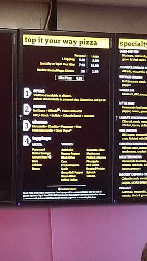 Went to Top It for the first time today, absolutely loved it. Im kind of a food snob, and this place was completely up-to-snuff. Great crust, quality ingredients, awesome variety, excellent service, really nice people all around. They even brush the crust with garlic butter and sprinkle your pizza with basil and sun-dried tomatoes if you want it. And its as fast as Subway. They have a couple of preconfigured options, but its better to pick and choose the ingredients as you make them.
