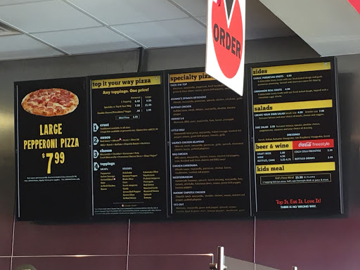 Although Top It Pizza was probably the one that started the build your own pizza movement in Houston, theyre severely lacking compared to tie competition. Mostly today hot toppings. The last time I was here, the service was bleh. The girl behind the counter didnt seem like she wanted to be there. No smiles, no enthusiasm. Unlike at Hot Toppings where the staff was always friendly every time I had been there. The pizza is good but they limit your meat toppings to only three and they really dont give you are whole lot. At the end of the day, I left here unsatisfied and still hungry.