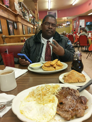 1st time here and reminds me of the old school diners. All employees and customers interacted. Everyone was very courteous and well mannered. Very good chicken fried steak and decent portions for the price. I will be coming back in the future when Im in the area. Thank you it was a very pleasant surprise and experience.