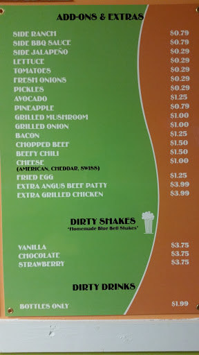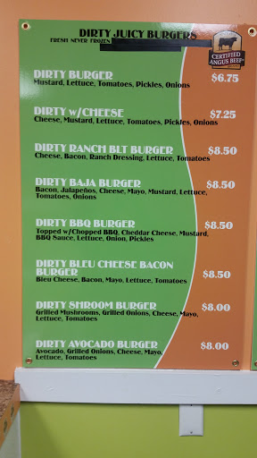 Many of the tables were occupied as I walked in. Atmosphere is okay, could use better lighting. I didnt have to wait long to place my order. There was no line. The lady at the counter patiently waited as I scanned their large menu. When I did approach her at the register she set her phone down (texting?) and took my order swiftly, straight forward. I dont mind this. Placed my Baja Dirty Burger (no fries, no drink) to go and rang up $9.xx. Its a bit steep in my opinion but freshly made patty, bread, and with bacon: can be worthwhile. I waited 8-10 minutes till she called out pleasant and sincere to me for my order ready to go in a brown bag. Took it to work and it was still hot. Bread was a custom sweet bread which I really love. Very juicy, and tasty. It holds merit to its name. Glad I didnt order any sides because it was a large burger and heavy for a lunch. I would be a returning customer to try other items on their large menu.