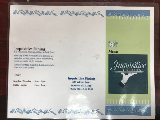 Im so happy to have a soul food in my area. The food items absolutely delicious ( got me doing my happy dance) and the service is great. This was my first time and trust me it will not be my last. I definitely recommend this restaurant to everyone.