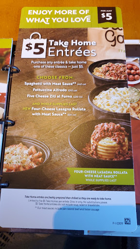 When the hostess told the waitter to take me to the table he just stood there folding menus ... i looked at him and he was,looking down then another guy stepped up and saild Ill take her. I got a table and asked for a booth the same guy that didnt walk me to the table said i had to wait 20 min for a booth...then a different girl said otherwise and gave me a booth. When i got to my table i waitted 10 min before getting the order of my drink. At the end i couldnt take a to go soup because it wasnt included to take to go even tough is unlimited when you order the fettuccine. I always go to olive garden and they ALWAYS send me one to go with that special.
