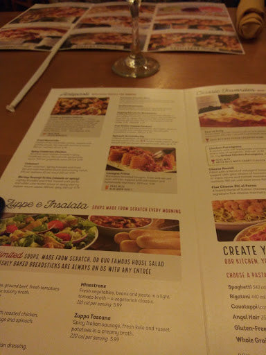 The Olive Garden has pretty good Italian food. Personally I love their Alfredo sauce, their eggplant Parmesan, and a couple other of their menu items. They are well known for their salads and soups. I want to like this location more. The food is often decent, I struggle with here because of the service. It has the potential to be better. I have often found the service to be on the slow side, and sometimes it just isnt good. If this was happening when the restaurant was packed I could understand. My last experience involved waiting 10 minutes for my beverage order, then I just ordered my food, food was delivered, and after waiting about 15 minutes after I finished eating I got the check, my credit card came back with no pen. While this may seem trivial. it is frustrating that a little better service would have resulted in a good dining experience instead of one that left me wondering why did i go here instead of Italianos.