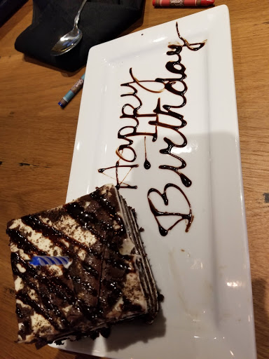 First when we were seated I couldnt believe how stuffy the seating was and very old and not cleanly. The waitress we first received was extremely ignorant and rude. Then we ended up with another waitress which I really wish I could remember her name however she apparently been working there longer and was extremely nice and checked on us frequently, she gave proper service. Also when I ordered my food I said it how its spoken in Italian and they tried correcting me. The food wasnt really what it supposed to be. Bread sticks were not made like other Olive gardens and tiramisu had nutmeg poured on it.