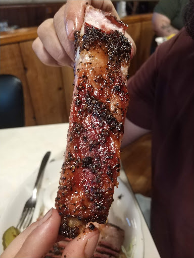 One experience so maybe faulted--but anyone saying fall off the bone is seriously in error very very tough meat beef ribs--mine at home turn out much better and I would never do more than 4 hours max---sauce though subjective to personal taste was one of the worse I have ever tasted. Service at counter was OK but a group of 7-8 Mexican looking men blocked entrance to dining room from counter and I has to raise my voice saying "excuse me" drawing attention from a group of police officers eating there. (hope it was free for them). When I could through hands and teeth remove meat from my $20 for 4 beef ribs from the bone, I went to counter and asked for a sharp knife told I only could use the butter knifes which were on the counter---basically a bad experience--would never return again.