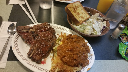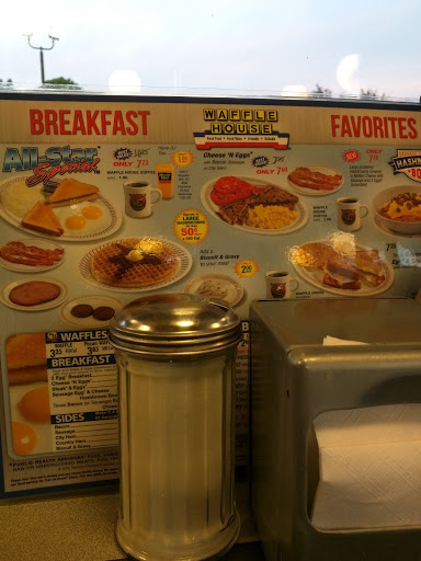 Always have had great service at this Waffle House. Been here many times and have never been disappointed. Always greeted, never have waited an unreasonable amount of time (when they are busy) ..food always good and served hot..... Friendly service.. I always go for the pork chop dinner.. on a separate menu that is not on the table..ask for it.. 2 chops,eggs, hash browns,toast for $8.95... great deal!