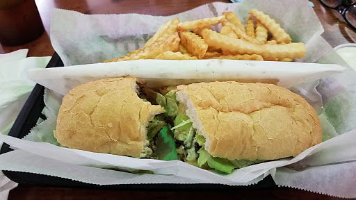 Tried for 30 minutes to call at 7:30 pm tonight. Finally just went there and ordered in person...they have seriously good shrimp poboys (usually)... The man working was outside on personal calls the majority of the time. While waiting for our food the phone rang several times but the guy working was outside on his phone. Sadly, the bread tonight was stale and the tomato mushy. Gross. Super disappointed. Hoping it was just an unusual bad night for the cook and maybe they will hire better help because I dont want to have to refer to myself as a former customer... Seriously, Two Sisters owners...dont let a terrible employee ruin your business.