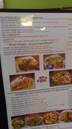 GOOD FOR TAKE OUT ONLY: This restaurant serves good food, but the customer service is awful. Im not from the area, so maybe there are not many Thai restaurants in this area because I cannot fathom why this place is highly rated. Due to the customer service, I would never come here with friends or on a date. I do recommend this restaurant for takeout. Here is my experience: I came with a couple of friends to this restaurant around 8pm on a Saturday night in mid-January 2017. When we got there, there was ample parking available, and literally one other table of customers. It made us wonder, on a Saturday night, if we had made a mistake. I felt a tickle in my throat, so I opted for hot green tea and some hot soup. We had a male waiter, and whenever we asked about the dishes, he basically said he didnt know how anything really tasted because he just started. There was an Asian lady sweeping up (which makes for a really uncomfortable atmosphere while youre eating, because it makes it seem like she wants to close up soon), and she came near the table but stayed about 5 feet away, talking loudly at us, and asked us if everything is ok. I asked her what is the difference in size between a cup and a bowl for the soups, and she could not describe it well. I said I have a taste for a Thai tea, but I have a cold, so I didnt want it cold. Could they pop it in the microwave and give me a hot version of that. She was a bit confused about this request, but brought it out. When it got to the table, she hands it to me and proceeds to tell me that this is the last time they will do a hot Thai tea, because the chef had to stand at the microwave and watch the tea being made so it wouldnt spill. Thai tea is normally premade, and they just pour it in a glass. I was shocked that she is telling me all this WHILE GIVING ME MY TEA, and my friends and I were staring at this lady like she was just crazy. The hot version of Thai tea is amazing and delicious. Her attitude, however, made me not enjoy this tea. Additionally, the fact that someone could not put something in the microwave despite what they charge for a Thai tea blew me away. Finally, youve never seen me or my friends before, so why are you talking to us like were coming back and WARNING us not to order this again? You could just have said that IF we tried to order it AGAIN. It was strange. So, without a response from us, she went away and continued sweeping. 3 minutes later, without any instigation from us, from about 10 feet away, she loudly started talking about WHY she cannot offer hot Thai tea again. My dining partner was like, is this lady crazy. I tried to change the subject so we could actually enjoy our meal. When I got my hot pot of soup, they also brought tiny bowls and Asian soup spoons to eat with. The problem with the soup was there were these GIANT wedges of tomato in there, and those wedges could not FIT on the soup spoon. Additionally, I got shrimp in my soup, and the tails were left on. When youre eating a soup, does it make sense to have the tail on? I had to use my fingers in between eating this soup, and again, this is not really great when youre in a restaurant dining with others. Smaller vegetable pieces and shrimp with tails cut off would have been improvements on the soup. I would have told the restaurant lady this feedback directly, but I didnt want to have her defensively shouting across the restaurant at me. A gentleman in our group took the bill, and because he believes everyone should have a living wage, he tipped well. If that lady is reading this, here are a few tips: Dont start sweeping until 10 minutes before closing. When speaking to customers, go to the table and speak so only that table can hear you. Dont complain about going the extra mile with service when there are less than 10 customers in your entire restaurant on a Saturday night. I wont be coming back to this restaurant EVER, but hopefully there are a few good takeaways from this review to make this restaurant better.