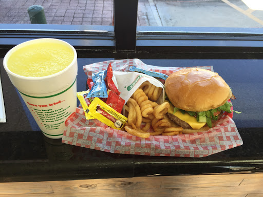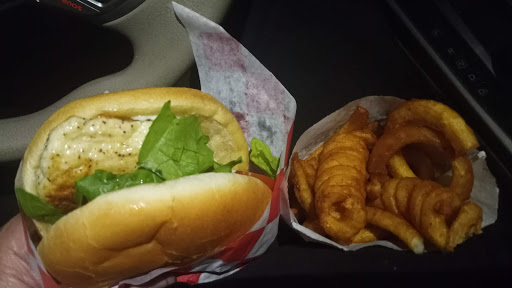 I typically like this chain but this particular location was terrible. So to preface this review please keep in mind there are better spots around the area. We chose to dine in the very very small, cramped interior. I think most of their business is based on driveup orders rather than people hanging out to eat. This isnt a dine-in establishment. They dont have enough room for a wheelchair. I took a bite of my burger and tasted burned meat. The bread was hard as a rock. After looking at it, it was also burned and dry. It was hard to chew. I didnt finish it. The fries and milkshake were decent. The cook in the kitchen was really hustling to get orders out in a decent time and we didnt have to wait long, to her credit. The customer that walked in after us had to repeat his order 4 times. Choose a different location if youre wanting to try this food out.