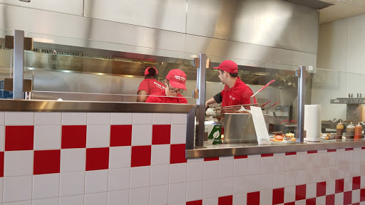 Excellent experience and the entire staff was really nice. Order was placed over the phone and everything was as ordered. Fries were cooked to order and I didnt request it. The gentleman who took the order suggested that my fries would be cooked when I arrive. They were CAJUN HOT. This was my 3rd time eating at this Five Guys and THEY NEVER DISAPPOINT ME. The food was great but the service was EXCELLENT ! Respectfully, Monica