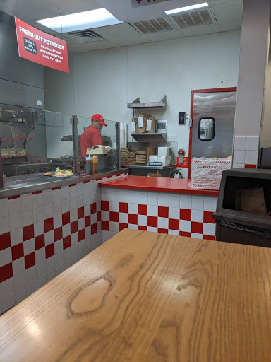 This location seems to be good compared to others that Ive been to. The burgers are pretty good. Lots of topping choices. Theyre pretty expensive though. Almost $8 for just one hamburger (no cheese). In-N-Out is right across the street for half the price. As a whole, Five guys is probably only 50% tastier for 100% more cost.