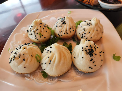 1. Soup dumplings (Steam Juicy Dumpling) They were absolutely amazing, this is something I would definitely come back for. Get it! You wont regret it It comes with 8 pieces and the texture or everything was perfect 2. Pan fried pork bun It was pretty good, Id consider getting it again but I wouldnt crave it by itself The bottom part reminds me of a bánh cam 6 pieces 3. Green onion pancake This wasnt my favorite. It wasnt bad but I wouldnt get it again. It was really bland and Im not sure what the hype is about it I could only eat one piece and my friend could only eat 2 there were a total of 8 pieces 4. Shrimp and Pork dumpling This was pretty basic and good I wouldnt mind eating this again Overall soup dumpling was what made this really good for me especially since I was really craving it the interior was nice and feels classy. Parking is easy. Service was pretty good, Im not one to really have conversations with servers so it was good to me.
