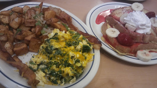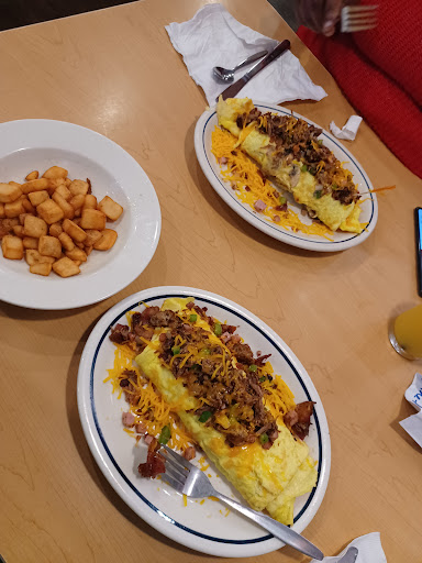 Worst IHOP location around. Food was decent, lower quality than other IHOPs, but pretty good. Servers were great, though. The food took forever to come out -- waited over an hour during a low-volume time. Restaurant is superficially clean, but has a filthy vibe: theres an underlying stench (mildew, maybe?) and the carpet is gross.