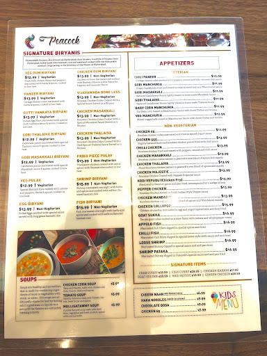 I wish I could have given a half star but Google wont allow you do that.. I am a regular customer to Peacock but lately their food taste /quality has gone south ..They cant maintain the top standards what they used to do an year ago. For example, one of my favorite item that I have recently ordered was boneless chicken biryani was dry, super spicy and top of that they had two small pieces of chicken in the box (to go order). So I decided to try one more time and it is the same when questioned they come up with some weird/non sense explanation.. Seriously Peacock restaurant has to get their act together before they are shutdown by their poor/pathetic services..