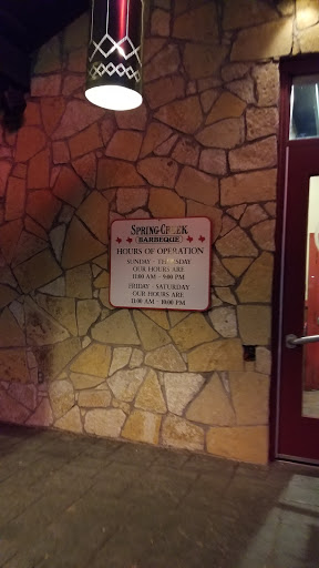 The BBQ is good. Im not a BBQ fanatic, so I dont argue BBQ preferences with people. But I will say that this location has better customer service than any other Spring Creek Ive visited because they seem to have an active, involved manager that holds his people to a higher standard.