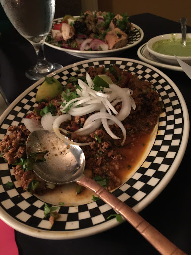 Price: 3.5 Ambiance: 4.5 Service: 4.5 Staff Appearance: 4.5 Food: 3.5 Presentation: 3.5 Ordered 1. Chicken Tikka Masala 2. Handi Jaituni laham 3. Dal Bhukhara Overall: 4.0 I went to the Underground Indian cuisine for dinner in Las Colinas on Tuesday night. Though skeptical I convinced myself it would be cool to dine in a dungeon with walls of curry and saffron. Needless to say i let my imagination run wild in anticipation of dining in the subterranean. I entered the seemingly uninhabited restaurant to find my soon to be gharwali awaiting eagerly for my arrival, though I was confused at first she pointed me to the elevator that would supposedly take us to our final destination. After a brief ride down, the doors opened up to a maitre d awaiting our arrival, the room was moderately lit offering an intimate setting with pleasant folk music playing in the background. Unfortunately no walls of curry and saffron but some good pieces of indopak art hung on the walls. We got situated and starting going over the Menu and this is where the fun started. I have never come across a menu with such unique descriptive names of dishes offered, a lot of thought and effort went into the menu and our excitement just seemed to have hit the roof at this point. Took us a while but we finally settled on our order and anxiously awaited for our food. Not 15 mins in the food made its way out to our table, it looked scrumptious. Chicken tikka masala, boneless cubes of chicken pieces well cooked in a creamy tomato gravy, good portion size and spiced just right. Every bite with the buttery naan just added to the sensation. Dal bukhara the restaurants signature dish from New Delhi, good portion, soft creamy black lentils, mellow, mildly spiced and melts right on your tongue, though ive had better, It was none too dissappointing. And finally the supposedly traditional food of lakhnavi nawab "Handi Jaituni Laham". Mutton cooked with almond gravy in dumpukt style. creamy and flavorful but the meat lacked the tenderness and well not enough meat, sadly the status quo of nawabi is misrepresented. As mentioned earlier this place offers a colorful menu and I plan on going back to try more of the delicacies they offer. Revisit: Most definitely