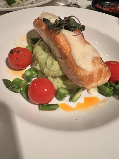 Lovely ambiance, excellent staff, forgettable food. We went in a group. I had assorted appetizers, tortilla soup, salmon, key lime pie. The staff was very helpful and good. The service was attentive without being annoying and thats hard to find. The appetizers were fine for the most part. The calamari was light and tasty, the stuffed jalapenos were good. The nachos were nicely assembled but bland. The tortilla soup seemed to have and tasted as if it had diced canned vegetables, the tortilla strips were added into the soup before being served instead of resting on top making them soggy, the chicken in the soup was okay. The salmon was cooked nicely however the accompanying asparagus was just the tops of the spears inserted into the mash flanked by giant tomato quarters. The key lime pie wasnt good in that it had a soggy crust and mediocre pie filling. I wish I had gone for the vanilla flan. It looked pretty good.