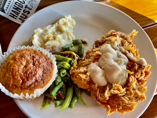 Outstanding smothered grilled chicken topped with grilled mushrooms and onions, sides were mashed potatoes, grilled veggies and cornbread for $8.00 The special....chicken Étouffée, home made rolls, strawberry shortcake and ice tea for $8.95. Everything was fresh, well plated and you can tell it is made from scratch. You will certainly not leave hungry and this is definitely one of your better places to eat in Kerrville. It was very clean, service was great, prices are good, and we will certainly return and tell our friends about it.