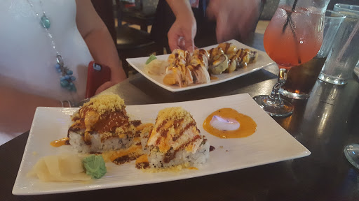 Their sushi is not my favorite because almost every roll is covered in some kind of mayo sauce. I find it difficult to eat healthily here, which is ironic for a sushi place... So, this is more American sushi than authentic. Most of their rolls are cooked and will defnitely fill burger-dependent stomachs! I often order out because Im not crazy about the atmosphere. Their music is so loud; it can be hard to carry on a conversation. But, if thats what you like...or if youre afraid your children will be too loud, go here! No one will know! Another downside: no happy hour! I made that mistake once and ended up paying $5 for beer! They have a full bar, so I thought surely they would have hh deals. Overall, its not a bad place.
