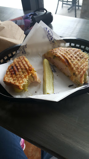 The shop is clean, bright and warm. The staff has a family vibe that is inviting and puts me at ease. Everyone has a ready smile, its actually competing with Chick-fil-a with "friendliest place to eat" as far as my "customer service" mental list goes. The food is not cheap but neither is the quality. Its been years since I tasted a really, really good hot chocolate mocha and they make them here. Also, hands down the sand-which that won me over is the "Baja Chipotle Turkey Sandwich", its simply amazing!! This sandwhich is packed with flavor. The moment I took a bite, every taste-bud lit up! This is the reason I ended up enrolling in their points system, I KNOW Ill be coming back for more. Its the perfect summer-time sandwhich and seems to carry its own cool breeze. Yeah its that good! Im on a budget and have already been here 3 times in one week, so its going to be a battle of internal will to avoid it for a while but I had to give a review and recommend their sandwhich. They also plan to be able to let you order ahead soon. That will save a lot of time for people in a hurry or wrestling with little ones. Looking forward to it!