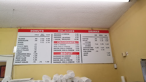 This is for the donuts - they are actually really good. Closish to Shipleys in quality and taste. Kolaches are mostly bread except for the overpriced ones with sausage, jalapeño, and cheese. Decent selection of donuts. Not huge though.