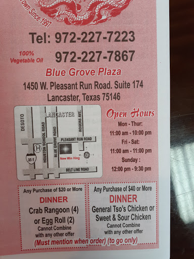 The food from here is pretty good. Too bad the service is the worse. Ever since this new lady came she has been nothing but rude. Phone call ordering is always rushed. Cant modify something without her getting an attitude. Whatever happen to old management or owners they use to be very friendly and helpful. Miss the old new win hing. Please change that attitude and youll have a decent chinese restaurant.