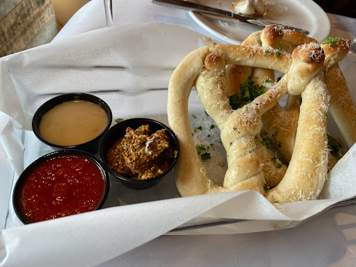 This place is so nice! I regrettably do not have our servers name (he had a bowtie made out of a dollar though!) but if the rest of the staff has a similar attitude then I further recommend this place. We had wine, beer and the mozzarella chips (off the kids menu, and our server comedically gave us complementary crayons with it!). Nice atmosphere here and good food and drinks though we didnt try much. We will definitely be back.