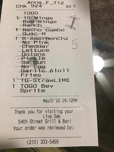 Went to 54th Street tonight for dinner. I ordered the blackened salmon and my husband ordered shrimp. Kids had the kids steak and pasta. The star though was our waitress Mallory. A sweet high school girl who had a really sweet smile and awesome attitude. She has only worked there for a few weeks but had GREAT service. She recommended a great starter and answered all our questions about the menu. It seemed like she was excited and happy to be at work-something you dont see often. I had to send my salmon back because it was cold in the middle but because of the service our waitress provided, I wasnt at all upset. The manager Ryan came to our table and was apologetic and I told him it wasnt a big deal and complemented our waitress because she was genuinely sorry my food was undercooked. Shortly afterwards Jake the kitchen manager came by and apologized and offered us a dessert in the house due to the inconvenience. The attention all three showed was very impressive. In closing, Mallory provided us with the best service we have had in a long time and should you go by I definitely recommend you sit in her section. Despite my food being cold, I still have to rate it five stars simply because her service was outstanding!!