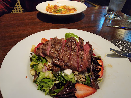 Server was nice, but it was all downhill from there. Ordered the $20 Terminator steak, medium well. After 30 mins, we finally get our food. Not only is the steak rare, its 50% fat. So I send it back, and the manager comes over to tell me theyll make sure it has less "marble". It was fat. So I wait 15 mins for another, cut into it, and its basically mooing at me. Bloody and red. Sent it back, told them to take it off the bill. Will never come back. Especially when Roadhouse is across the parking lot. At least the baked potato was good, but then again, you cant really mess that up.