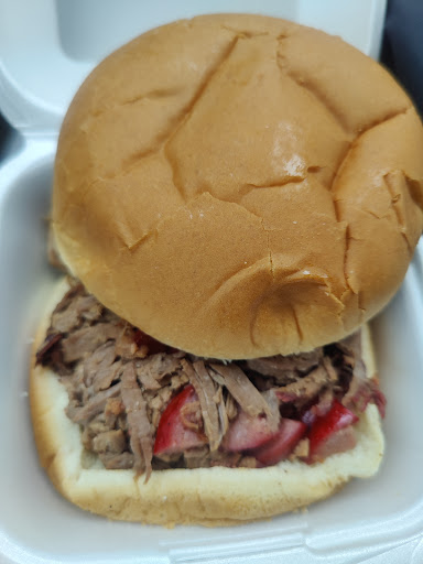 Got the baked potato with chopped brisket to go. Son got sloppy joes. We were both very pleased