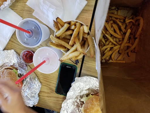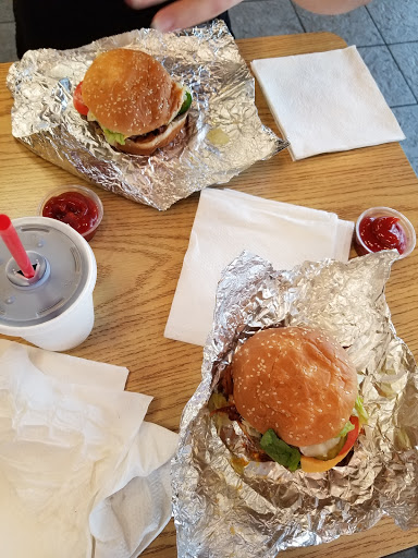 Five guys is simple. The best burger and fries in town. Big two Patty burgers and loads of tasty fries that are cut from fresh potatoes every day. There ate no fridges so all the meat is fresh. Also free peanuts. Dont order a large because a normal sized fry is thought for two