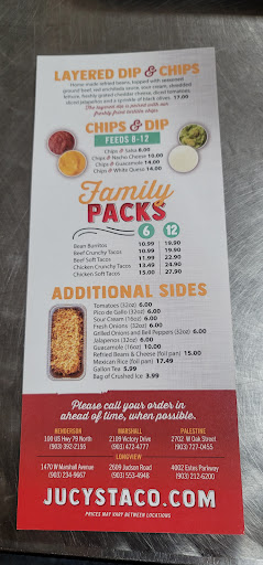 Best tacos ever! My favorite is Jucys Best Taco. It has a fried flour shell that I just cant get enough of! And the price is so reasonable. This is by far our favorite fast food restaurant.