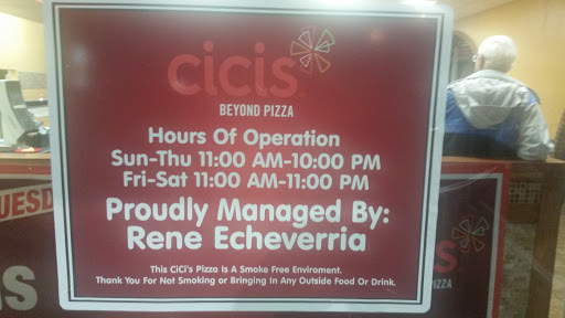 I was not happy with my experience at this CiCis pizza. Two friends and I arrived and waited for a good 10+ minutes to pay for our buffet. (Paid $6.15) They charge a 75 cent debit card fee and did not give a student discount (like other CiCis I have been to do). The location was also sketchy. It was a very grungy atmosphere and I was not comfortable eating there. Although, the manager was very nice and helpful.