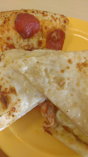 Gross! The pizza is not good and tastes dirty or written or something, the place is filthy, the workers are unprofessional to put it nicely. Only the boy workers are wearing hats and I guess the females can violate the healthcode regarding hairnets or caps for the sake of their appearance. Not a single glove to be seen. It seems the workers are so used to this too bc a guy was movie old brownies on with a plate of new ones and was picking them off with his bare hands. Saw the pizza assembler and she and her manager were making pizzas with no gloves. I was there for an hour and didnt see anyone wash their hands once. Given this place a few chances throughout the years and this is my last time eating here. Ashamed I came back after the last time. They never listened well when taking a special order. No mater who this place employees, its below standard. Owner must be awful. My spouse joked that he must be really rich and is just linking people or something.
