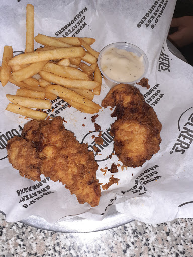 One more bite and Im going to pop. My wife and I eat at Fuddruckers a lot. This location is clean, staff is so nice and we always leave so full. While we do love getting a great Burger at fuds, we almost always get the crispy chicken salad and a basket of fries. Now Im no small guy and I couldnt finish the salad. Its full of tender yet crispy chicken, carrots, egg, red onion, and more. To top off our visit the staff gave us some free cookies, I wasnt expecting much but they are actually really really good. I could actually see myself going to fuds just for cookies!