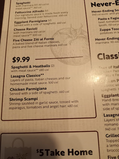 Just went there for veterans day for the free meal and it really was just a bad experience. The food was "fine" but tasted totally processed and boxed and for the price youre paying you would expect a better flavor! My husband got the mannicoti for $14! Next time I might as well just go to the grocery store and buy him a box one -itll be waay cheaper and probably taste better, too! The service was fine except the watress forgot to mention that the table tablets that they have for kids to play on cost money -we thought you wouldve had to swipe your card to activate them so we let our kids play on them not knowing we were being charged. :/ Then she charged me for sauce with out telling me before and for a drink that shouldve just been a refill... oh AND I left without getting my credit card back. -i dont remember if she ever gave it back to me or not- I know its not her fault, it was just another annoying part of the experience. I called them about half an hour after leaving and then again later but they never found it. :/ Our kids were with us and so we ordered them both a kids meal but it was too hot for them to eat until we got home that evening and then it was disgusting!!! They both got the mac n cheese but both refused to eat it cuz they said it was gross, I thought they were just being too picky so I tried some and no, it was indeed nasty! How can an Italian restaurant screw up macaroni and cheese?!! If i was guessing Id say it tasted like powder or corn starch. Just ew. I guess in a way Im grateful for this experience for reminding us why we dont go out to eat hardly ever anymore and why we are never eating at Olive garden again! Thanks for saving us money in the future!